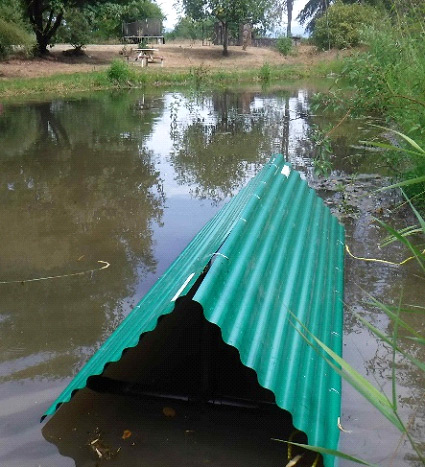 ⦁ Over at Manly Road Creek located just below and west of the Daybreak Bridge that crosses the lower East Fork, we continued our work of improving the salmon spawning beds and the associated juvenile salmon rearing pool that we cleaned of sediment last year. Now we have a floating juvenile fish shed to protect young salmon and emerging fry by providing both cover from predators, and also reduced direct sunlight exposure. We hope to build more of these very economical, simple, but effective floating PVC pipe sheds next year at a cost of about $140 per shed.